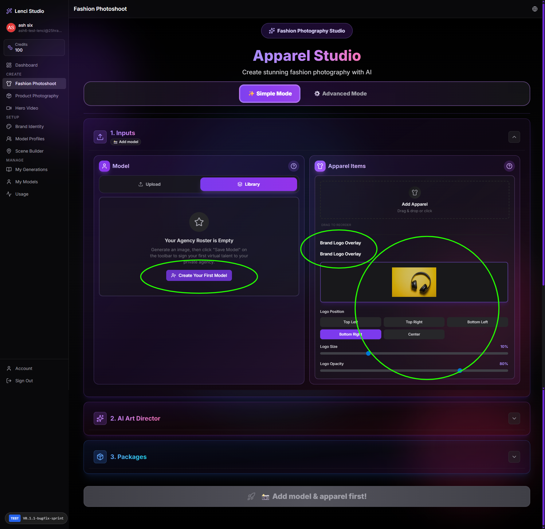 user: ash6-test-lenci@25hraf.com 1) “Create Your First Model” button does nothing Issue Description In Inputs → Model → Library (empty state: “Your Agency Roster is Empty”), clicking Create Your First Model produces no navigation, modal, or action. This is a dead-end CTA on the primary empty-state path, so a new user cannot recover without guessing where to go next. Expected Behavior When the roster is empty, Create Your First Model should reliably take the user to the model-creation flow, for example: Navigate to Model Profiles / Models Studio (or whatever the canonical “create model” page is), or Open an in-place modal/wizard to upload a model photo and save it as a model. If the feature is gated (credits/permissions), the button should show a clear message explaining why + next step. Implementation Recommendations Wire the CTA to a single canonical action: navigate('/models/new') or navigate('/models-studio?source=apparel_empty') Or openCreateModelModal({ source: 'apparel_library_empty' }) Add guardrails: If route doesn’t exist / API unavailable, show toast: “Couldn’t open model creator. Please try again.” (not silent fail) Add instrumentation: Log click + result (navigated / modal opened / error) to catch regressions. QA checklist: Works in Simple/Advanced mode, desktop/mobile, and for brand-new accounts with no models. 2) “Brand Logo Overlay” label is duplicated Issue Description In Apparel Items → Brand Logo Overlay, the text “Brand Logo Overlay” appears twice (stacked). This looks like a UI rendering bug (duplicate header/label) and reduces trust/visual polish. Expected Behavior The label should appear once, as either: A section header (“Brand Logo Overlay”), and below it the controls, or A form label tied to the upload/control group. Implementation Recommendations Inspect component tree: likely two sources rendering the same string: Section header component + form field label Or translated key rendered twice (e.g., <SectionTitle /> and <FieldLabel />) Fix by: Removing one label, or Converting one into a smaller helper text (“Optional — apply logo watermark to outputs”) Add UI snapshot test (or simple regression test) to ensure only one instance exists. 3) New account already has a logo preloaded Issue Description On a new account, the Brand Logo Overlay area already contains a logo asset and settings (position/size/opacity). That implies state leakage or unintended default seeding, which is confusing and may be a privacy/compliance risk if assets can come from another tenant/user. Expected Behavior For a brand-new account: Brand logo overlay should be empty by default (no asset selected). If you intentionally provide a starter/demo logo, it must be clearly labeled as “Sample” and removable, and must not be a real user asset. Assets shown must always be scoped to the current tenant/user only. Implementation Recommendations Verify data scoping: Ensure logo queries use tenant_id / org_id and (if needed) user_id filters. Confirm CDN/storage paths are tenant-scoped (no shared “default” bucket without tenant prefix). Check client-side caching: If you store “last used logo” in localStorage/sessionStorage, make sure keys are namespaced by tenant + user, and cleared on logout/switch account. Check server defaults/seeding: If your onboarding seeds a default brand, ensure it seeds only metadata or a true system sample, not a reused asset reference. Add a safety UI: Show a “Clear logo” / “Reset overlay” action. Add QA test: Create a new tenant → confirm no brand assets exist and overlay is empty.