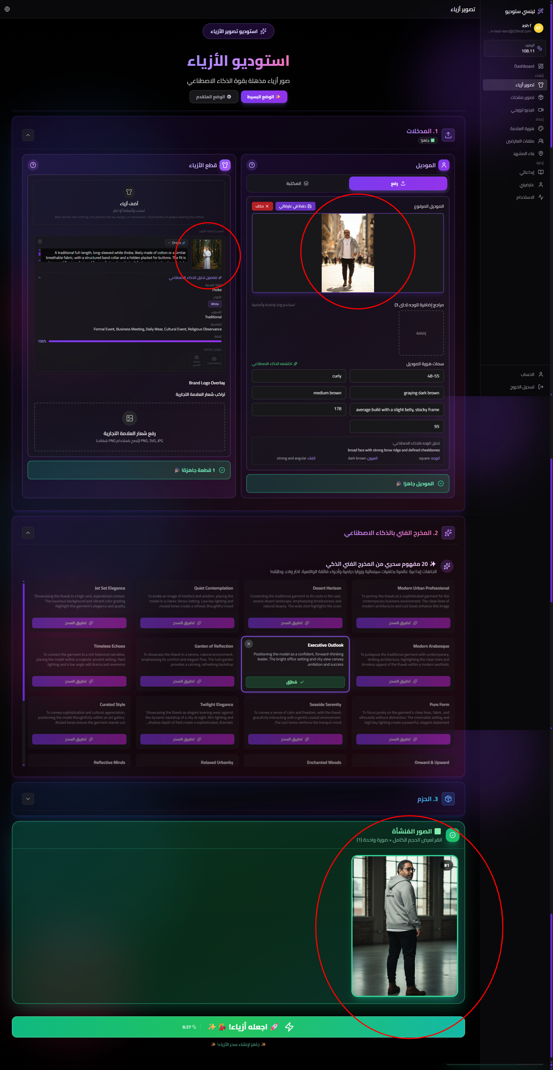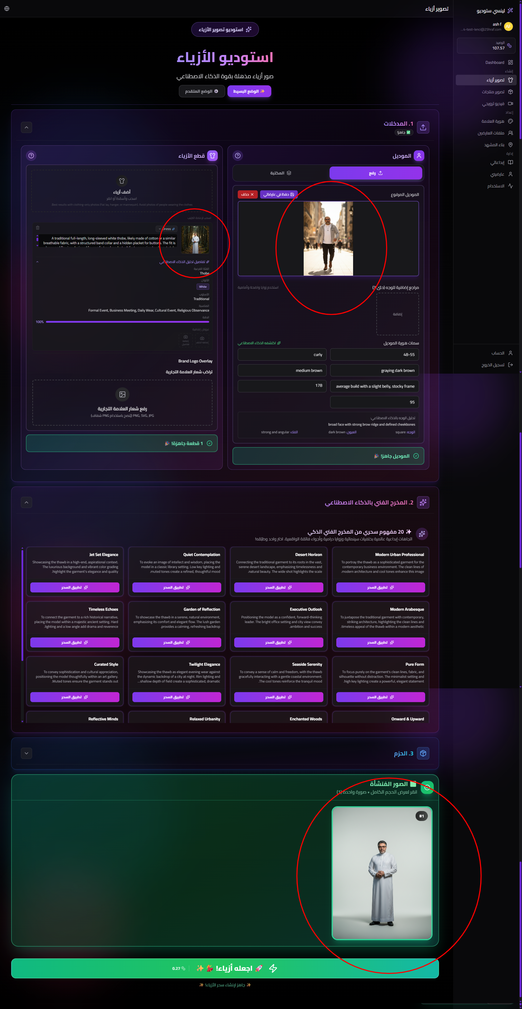 Issue description In Apparel Studio (Fashion Photoshoot), the generated output does not consistently reflect the current session inputs. After selecting a specific model photo and apparel item, the “Generated Images” result can show an image that appears unrelated to the selected inputs (e.g., different person/outfit), which makes the generation flow feel non-deterministic and unreliable. Expected behavior Generated images should be strictly derived from the currently selected inputs in the same session: Selected Model (identity) Selected Apparel Item(s) (outfit) Any applied Art Director concept / settings The “Generated Images” panel should only show outputs that belong to the active studio + active generation session, with no leakage from other runs or previous sessions. Acceptance criteria When the user selects a model + apparel and clicks generate, every returned image: Matches the selected model identity (no different person). Matches the selected apparel item(s) (no unrelated outfit). The Generated Images grid is tied to the current generation request: No old images appear unless the user intentionally loads “My Generations” / history. The UI clearly associates outputs with inputs: Each generated image shows (at minimum) the model/apparel used (thumbnail or label) and a generation timestamp or request id. Switching language (Arabic/English) or navigating within the studio does not cause the next generated outputs to use stale/previous inputs.